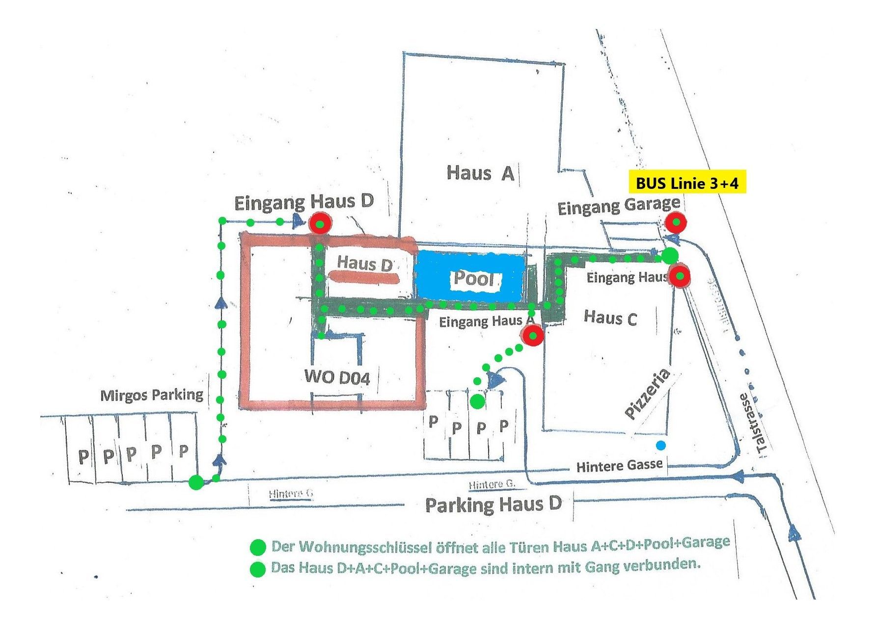 Ausstattung der Küche sowie Informationen zur Anreise